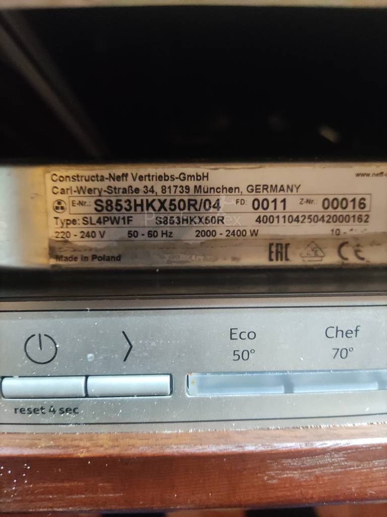 Ошибка E15 в посудомоечных машинах NEFF (BOSCH) - означает срабатывание системы аквастоп. Система выдает ошибку, т.к. у Вас в поддоне скопилась вода и датчик на наличие воды сработал, включив аквастоп. Данную проблему можно и нужно решить самостоятельно. Это можно сделать следующим образом: