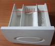 AKAI AWM 1000 WS - стиральная машина с фронтальной загрузкой белья до 5 кг, электронный тип управления с отжимом до 1000 оборотов, без сушки. Для того, чтобы достать лоток для моющих средств (кювету) необходимо сверху на него немного нажать в отрытом состоянии и потянуть на себя. Смотрите приложенную картинку.