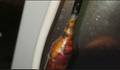 На фильтре слева сверху и по длине - желтые и белые засохшие потеки (снимаются вместе со слоем покрытия фильтра). А снизу фильтра при соединении с капиллярной трубкой на месте сильного изгиба были черные маслянистые капли, через нек. время пропали (там же ощущается заострение похожее на разлом, но щели не видно) — см. фото.