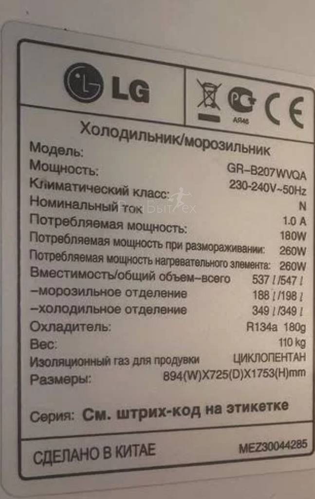 Год выпуска зашифрован в серийном номере. Вы должны знать, что компания LG использует десятилетний цикл присвоения даты производства серийному номеру. Это означает, что ни один продукт LG не производится дольше 10 лет. В качестве примера рассмотрим фактический серийный номер, 410KRSB08294, взятый из информационного листа холодильника.