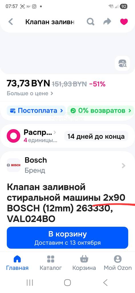 Елена 12 окт. 202512Добрый день!Подскажите пожалуйста, как выглядит полностью,впускной клапан от стиральной машины Bosch Maxx 4 WFC1667PL 4,5 кг.Дело в том что, заказали на OZON клапан ,но не уверены подойдёт ли ?.Фото прикрепляю.Ваш комментарийОтветить мастеру