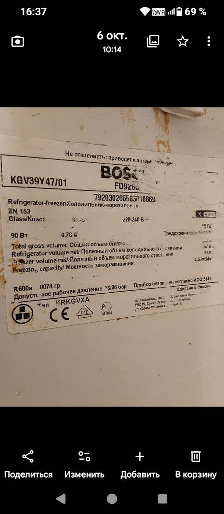 Наталия 07 нояб. 202526Холодильник не морозит. В нижней стене - дырочка. Наверно, весь фреон вышел( был запах). Можно в холодильнике Бош включить только морозильную камеру?