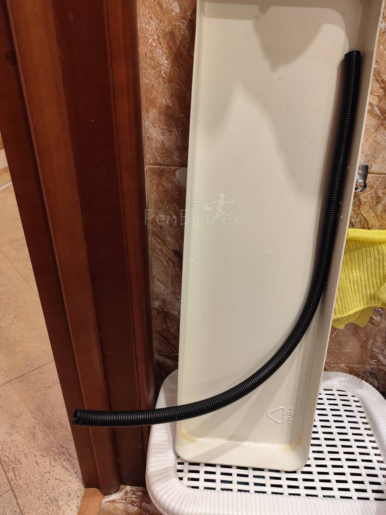 Хотела протереть поддон,который установлен внизу под холодильником и случайно вытащился шланг,через который сливается конденсат из холодильной камеры,т.к. он был приклеен к самому поддону,что я не заметила. Как и куда его нужно вставить обратно?