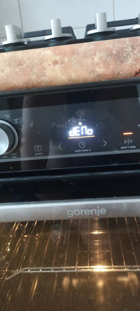 Электрический духовой шкаф Gorenje BO6737E02BG с грилем и электронным управлением. Включен ДЕМО режим. Для отключения режима нужно последовательно нажать stop/starl, clock, gratin.