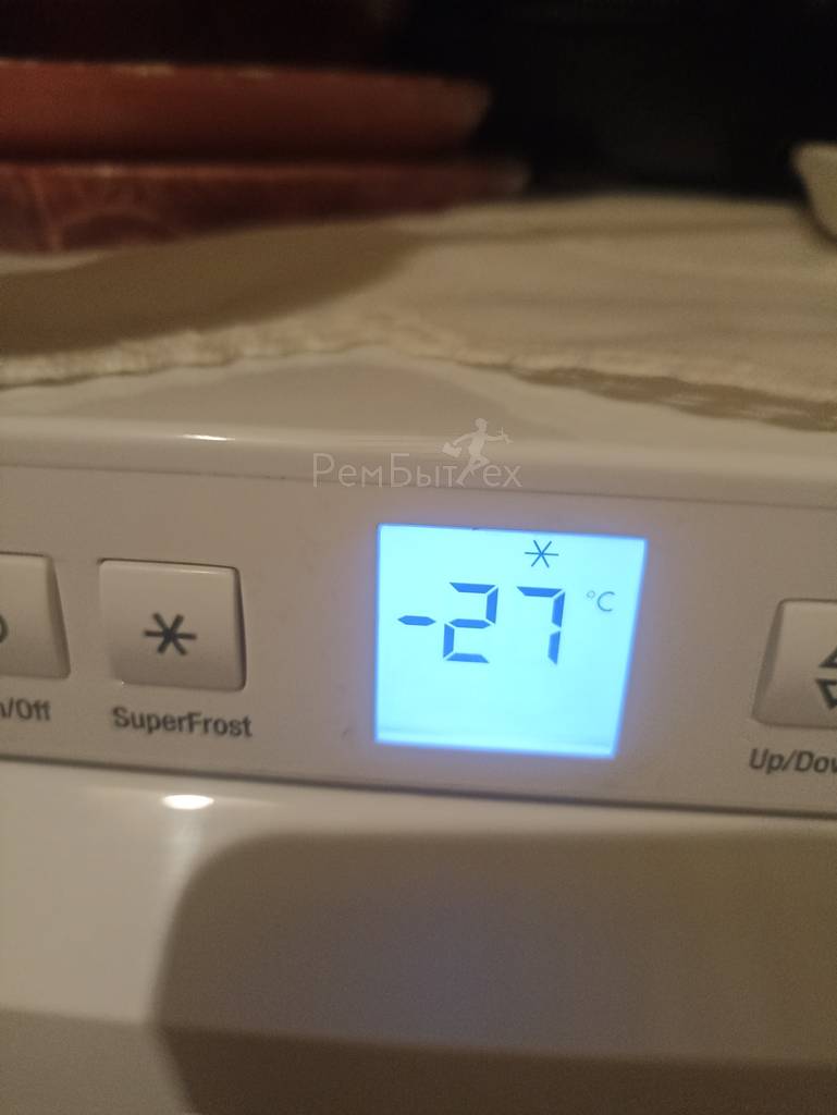 Здравствуйте! Морозилка морозит (-15,4) (регулятор стоит на - 15), а вот верхняя камера имеет температуру 11-13 градусов (при замере электронным термометром) регулятор стоит на положении (7). Расположенный вверху вентилятор возможно не работает, т.к. никогда не видел его в работе. Соответственно продукты в верхнем отделении не хранятся!