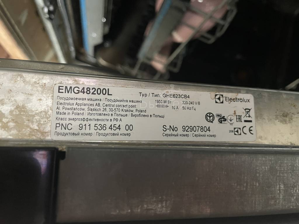 Посудомоечная машина течет снизу на этапе слива, затем Electrolux выдает ошибку i30, возможно слышен звуковой сигнал. Также постоянно работает сливной насос.