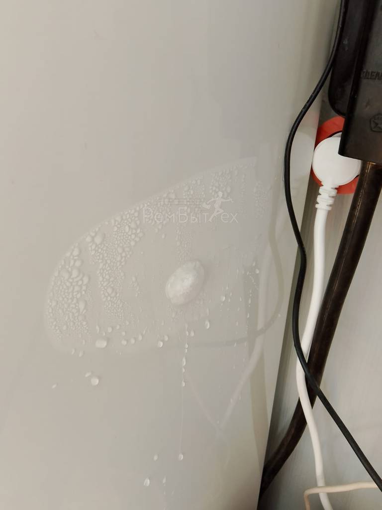 Вода стекает по задней стенке в большом количестве чем обычно. Сзади пластиковый контейнер для воды переполняется, ящики BioFresh мокрые.