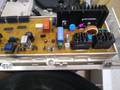 При повреждении управляющей платы вследствие длительной эксплуатации или скачков напряжения происходят различные программные сбои. В том числе, машинка может зависать на этапе стирки.