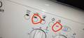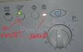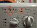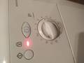 Самые старенькие модели Индезит без экрана с двумя индикаторами - включения / выключения и блокировки люка - сигнализируют об ошибке вращением по кругу селектора (ручки выбора) программ и миганием лампочки включения / выключения. Она часто моргает с перерывами между сериями в 3-5 секунд. Количество частых мерцаний индикатора питания в серии соответствует номеру ошибку. При этом лампочка блокировки дверцы стиралки «Замок» обычно просто горит.