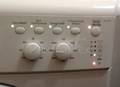В данных моделях Индезит за индикацию ошибки отвечают горящие светодиоды выполнения фаз цикла программы (полоскание, отжим, слив и т.д.) и индикатор блокировки люка (замок). При любой ошибке также обычно мерцают лампочки дополнительных функций и индикатор питания.