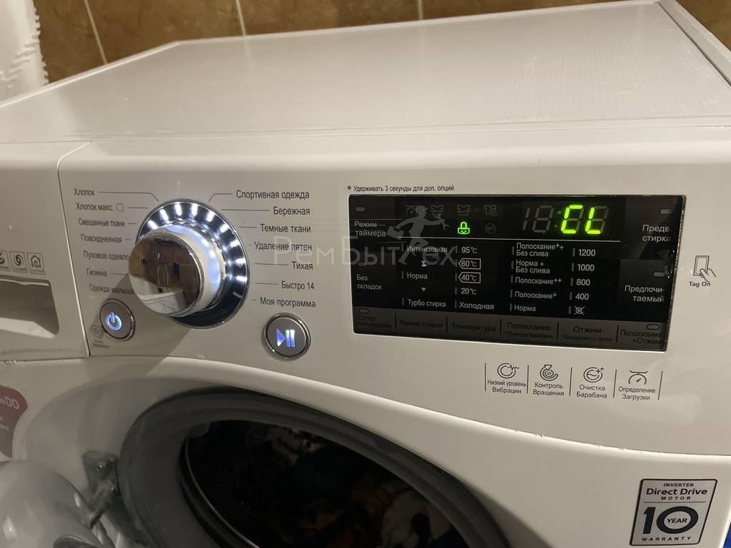 Для моделей LG с сенсорным управлением для снятия блокировки необходимо удерживать 3-4 секунды одну из клавиш основных функций, под которой указана пометка со звёздочкой «Блокировка от детей». Например, это могут быть кнопки «Без складок» или «Отложенная стирка».